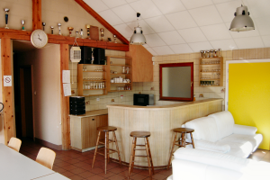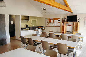 - Équipement : four traditionnel, four micro-ondes, frigo, congélateur, vaisselle, 4 tables, 20 chaises, 2 canapés