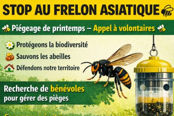 Dans le cadre de la lutte contre le frelon asiatique (Vespa velutina), espèce invasive représentant une menace pour la biodiversité, les abeilles et la sécurité des personnes, une opération de piégeage de printemps est organisée sur la communauté de communes Alsace Rhin Brisach (CCARB).